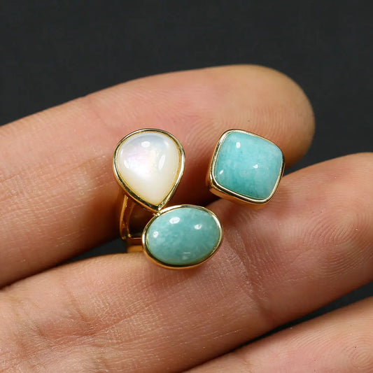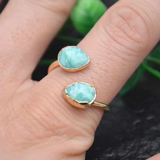 Bague Amazonite Cœur Goutte d'Eau Ouverte