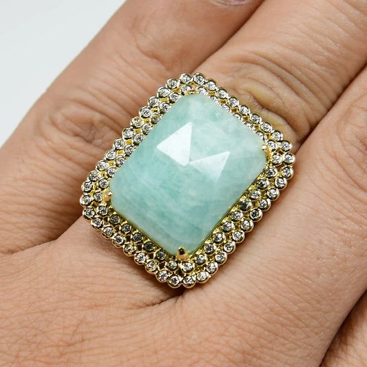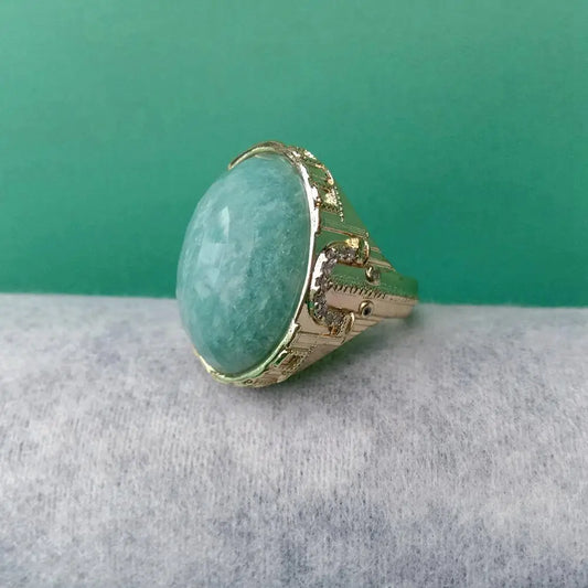 Bague Amazonite Rectangulaire CZ Plaqué Or Ajustable