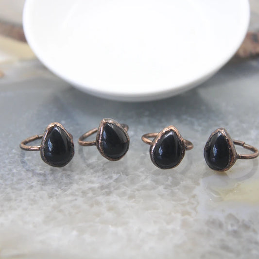 Bague Obsidienne Goutte Cuivre Antique Ajustable
