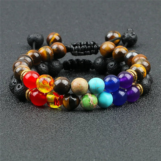 Bracelet 7 Chakras – Œil de Tigre & Lave