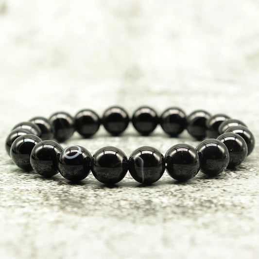 Bracelet Minimaliste Agate Noire (6-12 mm)