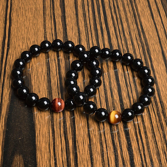 Bracelet Agate Noire & Œil de Tigre Rouge (6-12 mm)