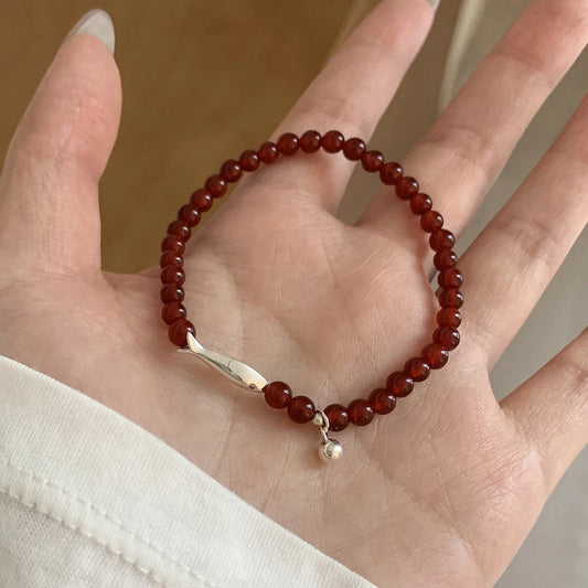 Bracelet Argent 925 & Agate Rouge – Poisson Rétro