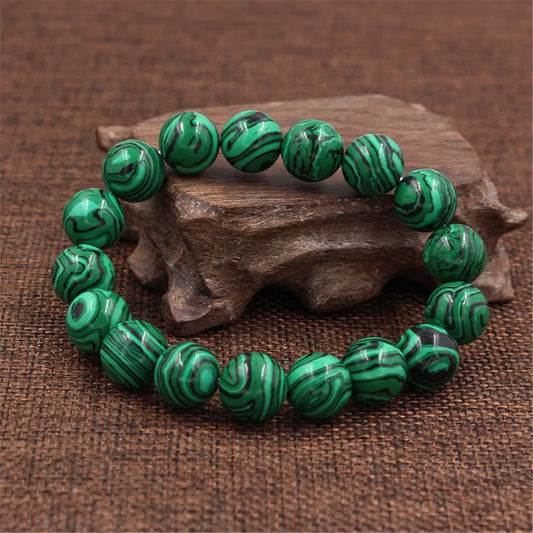 Bracelet Malachite 6/8/10/12 mm – Élastique & Bien-Être